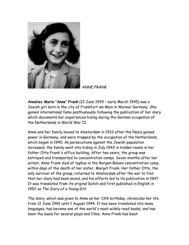 Read the diary of anne frank [note: